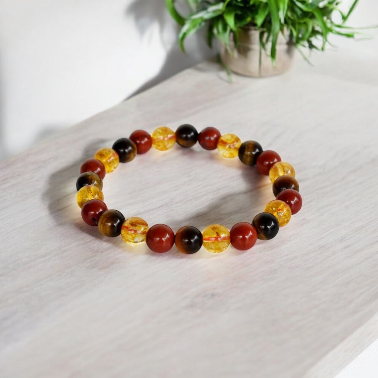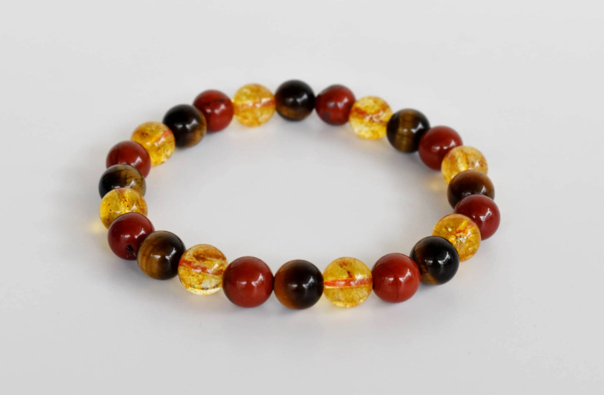 The Confidence Bracelet blends three empowering stones to create a bold, action-driven energy field: